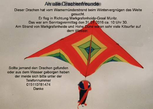 Und auch diesmal kamen zahlreiche Drachenflieger von nah und fern unter der Federführung der 'Rostocker Drachenstrolche' am Ostseestrand zusammen. Bei sehr stürmischen Bedingungen, wenigstens war es trocken, waren auch wir Fischköppe zahlreich vertreten. Mit Regina und Jürgen, Anke und Martin, Günther und Hans schafften es immerhin 6 von uns an die Küste. Und letzterer, nämlich Hans, knipste sich wieder durch den Tag und verschafft uns Daheimgebliebenen so einige schöne Einblicke. Vorher aber noch ein Bild aus besonderm Anlass: